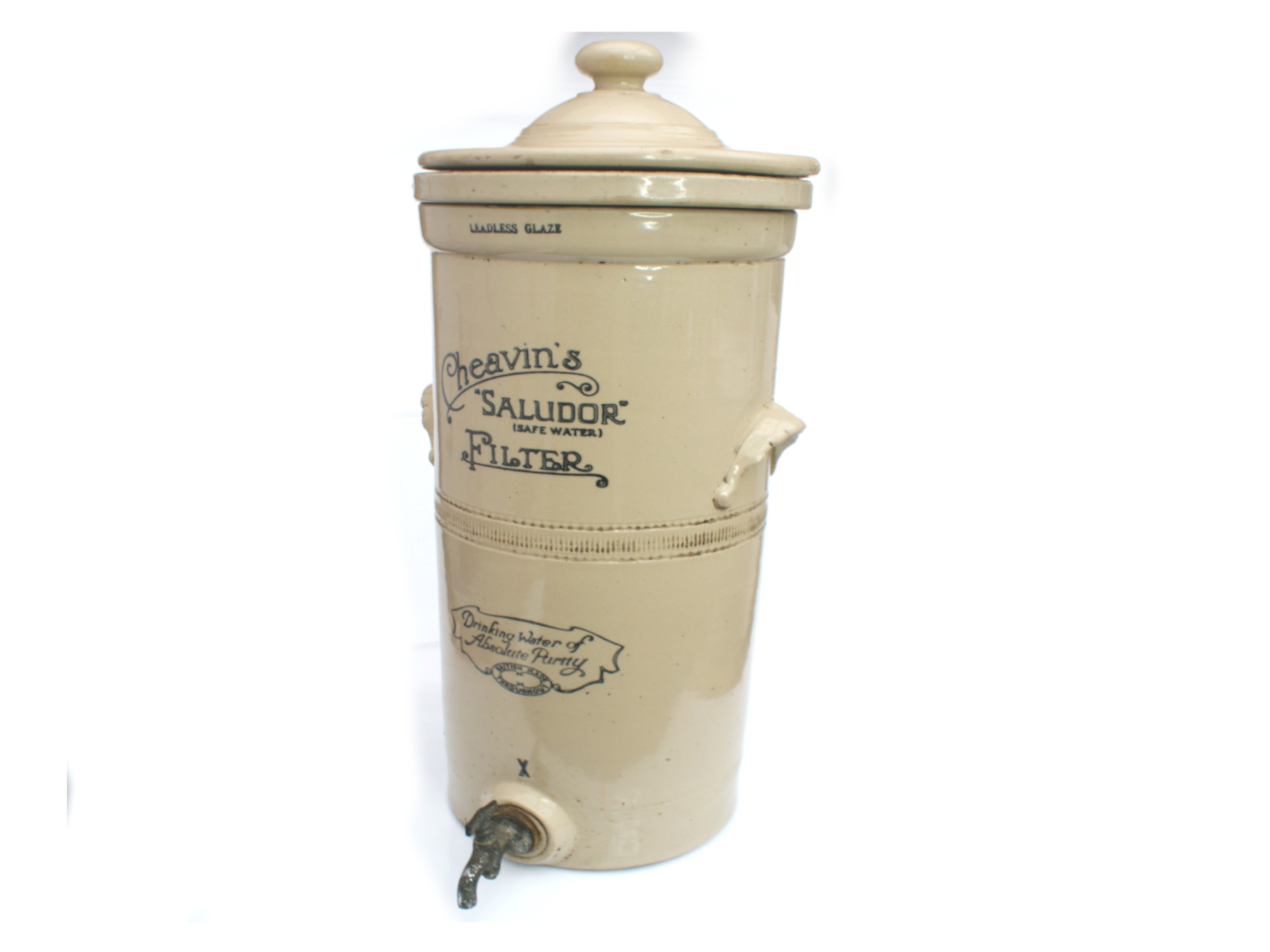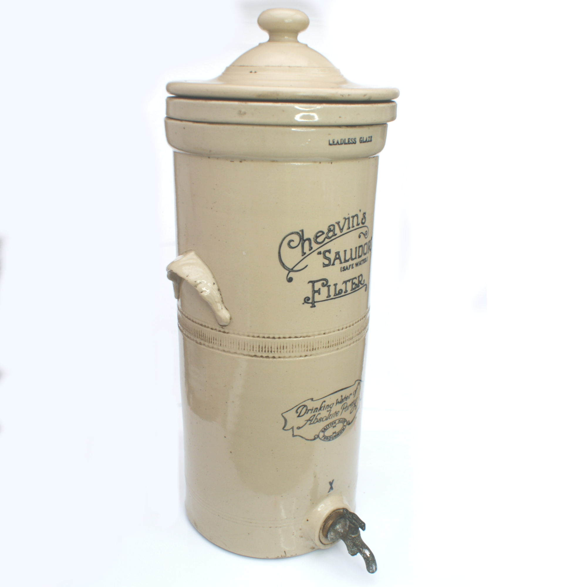 An Attractive Circa 1860's Cheavins Saludor (Safe Water) Filter, "Drinking Water of Absolute Purity". overall good used condition, with clear writing and insides present.
