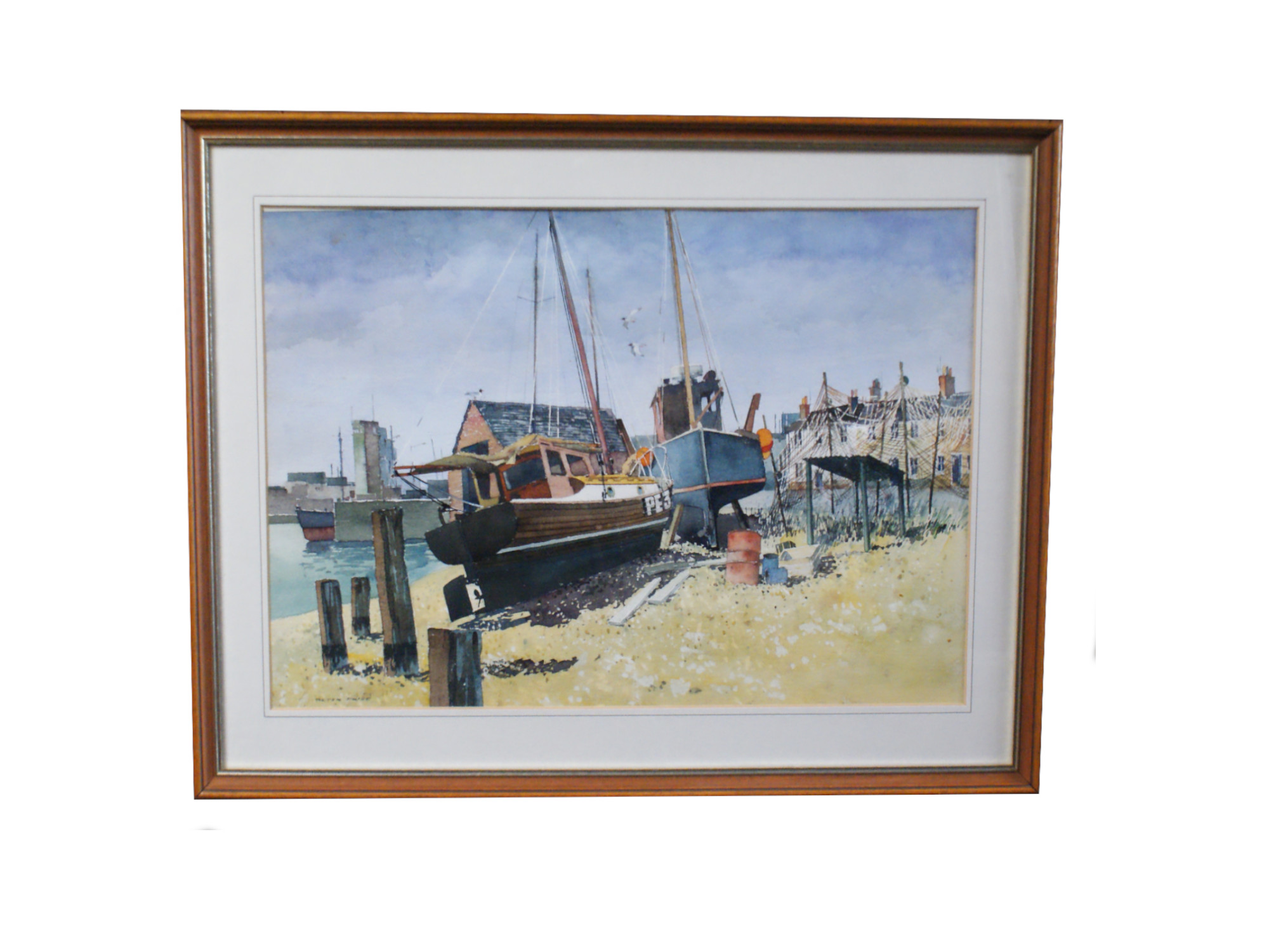Peter Price Watercolour, Fishing Boats In Harbour, an attractive scene, well painted