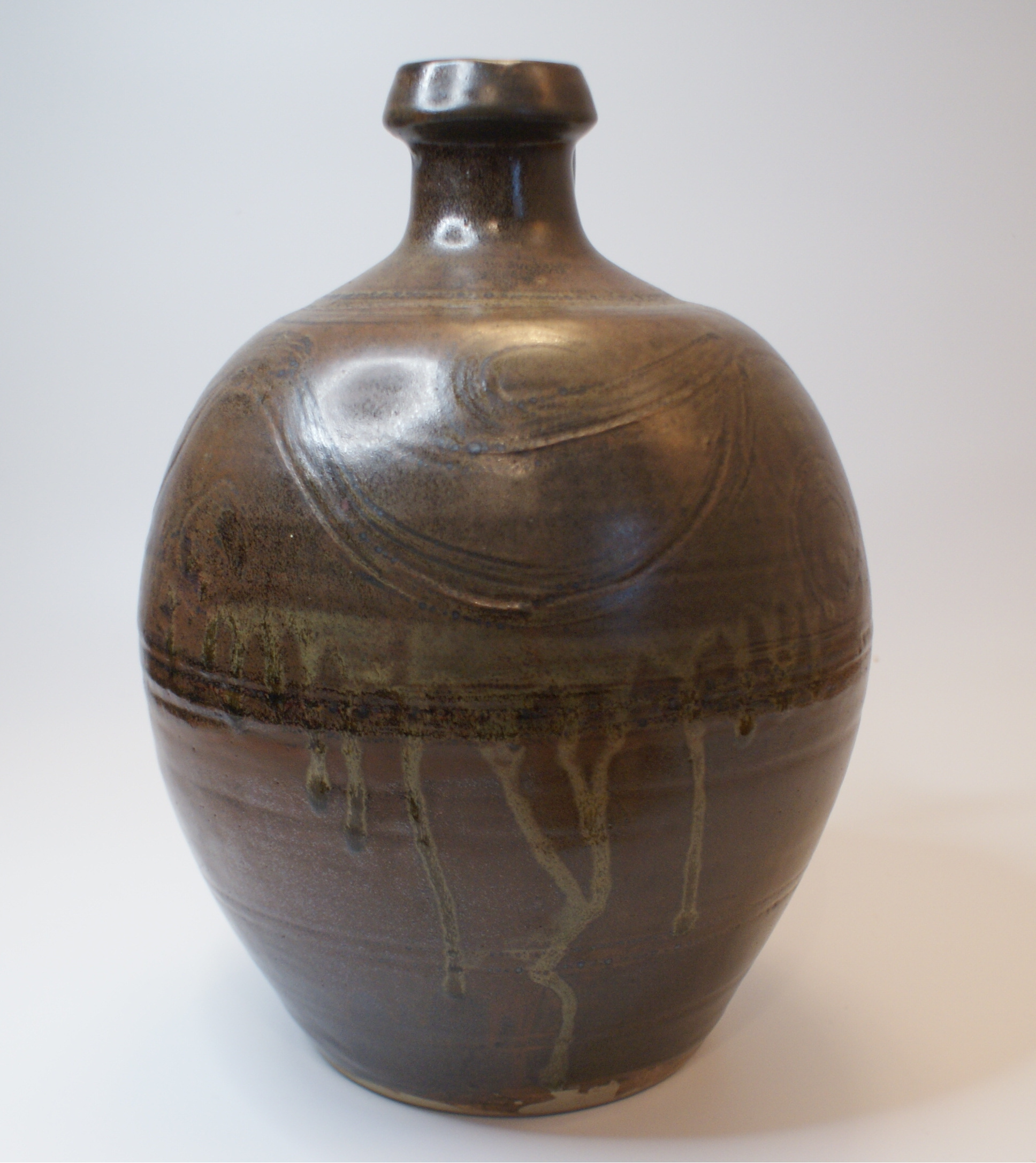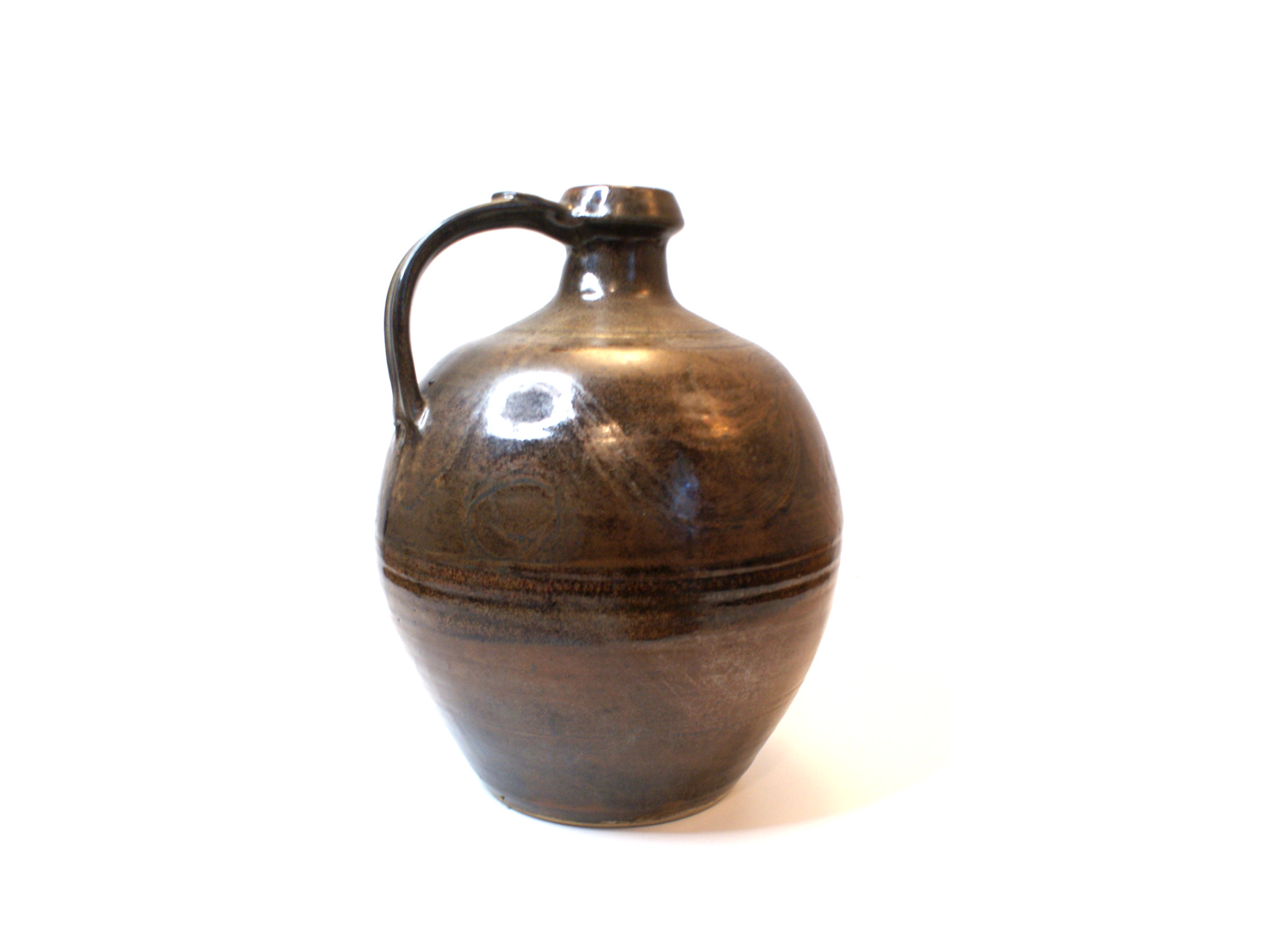 M. Tovey (Rowlstone Pottery) a single handled stoneware ewer decorated in brown glazes.