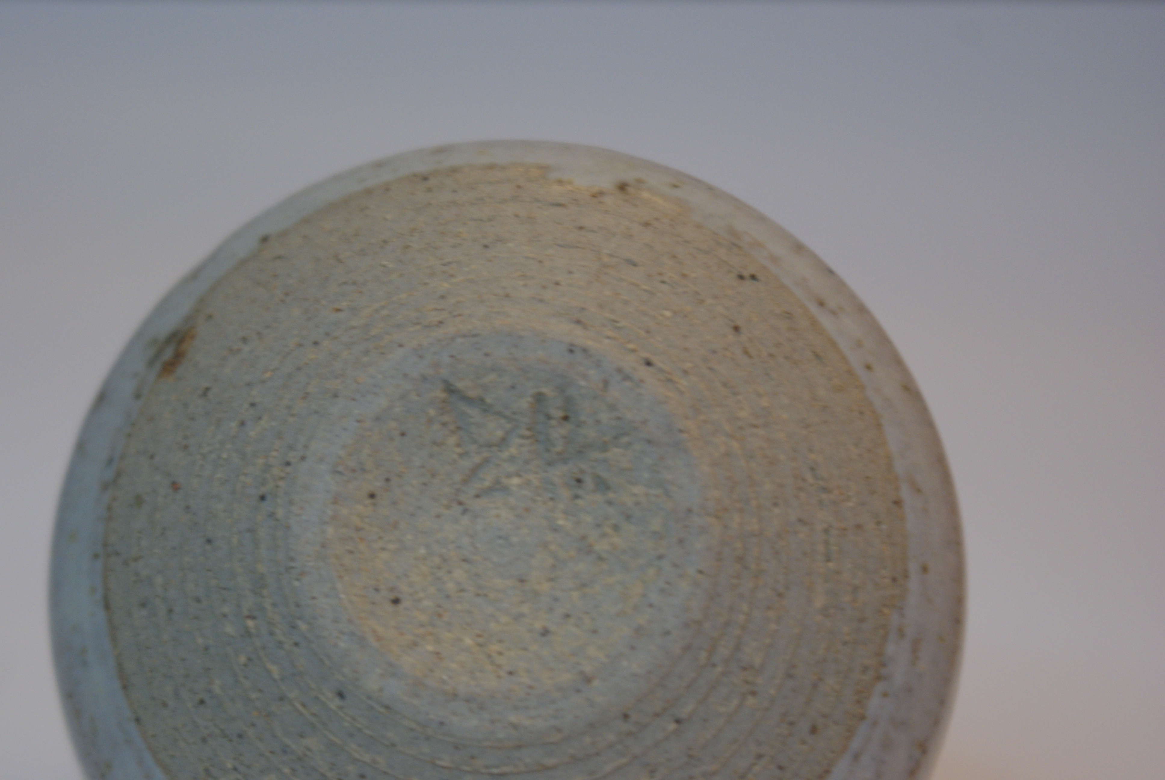 A David Heminsley ( 1927-2007 ) globular form stoneware vase in white glazes.Incised mark.