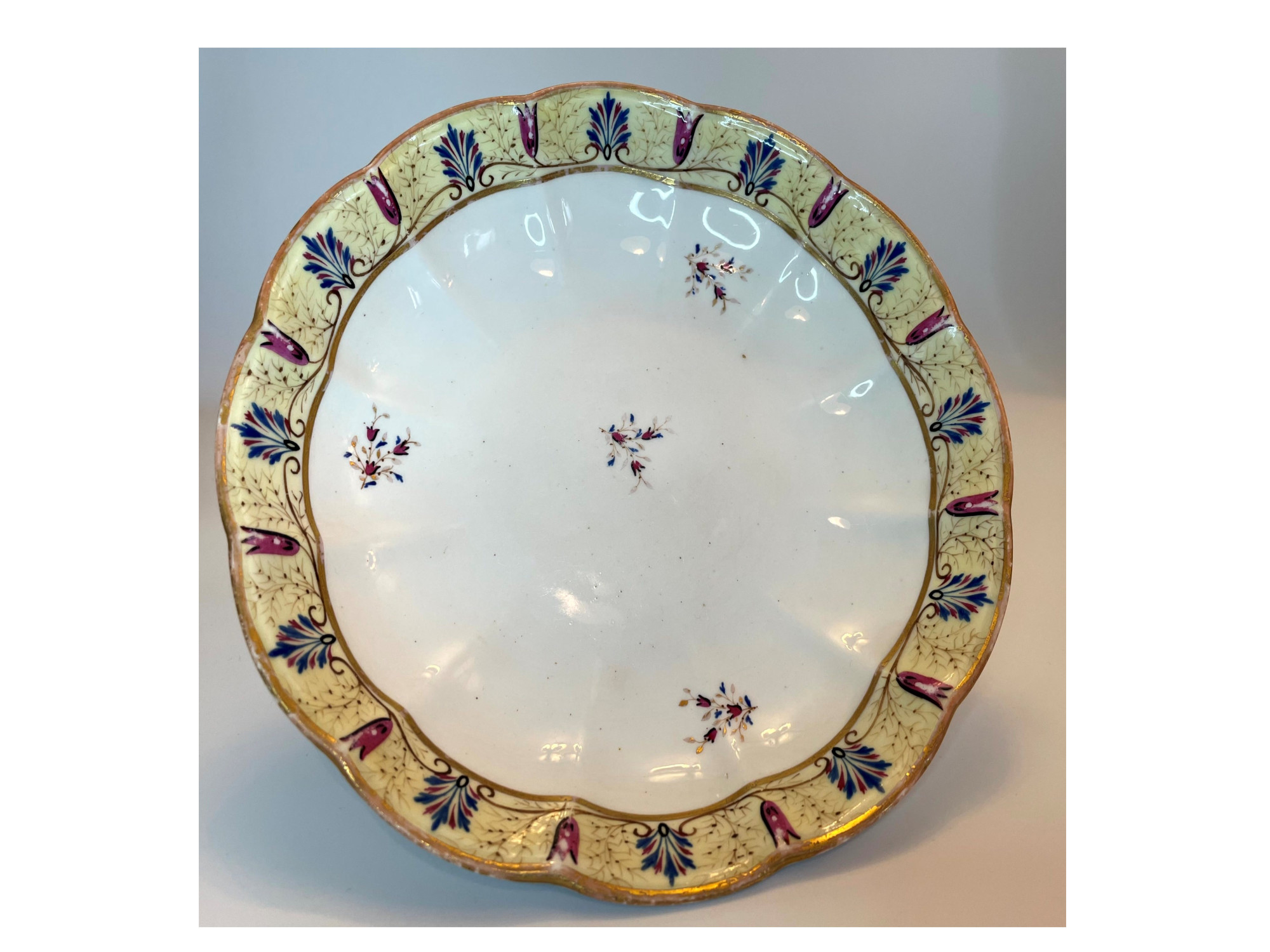 Early 19th Century Derby Porcelain Bowl, cream raised border decorated with anthemion's and sprigs of flowers.Puce marked and number 225.