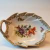 A Dresden Early XX Century Porcelain Leaf Shaped Dish, decorated with flowers within a gilt border.