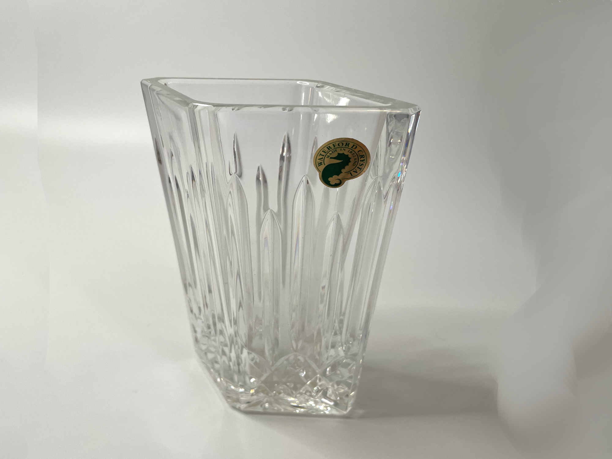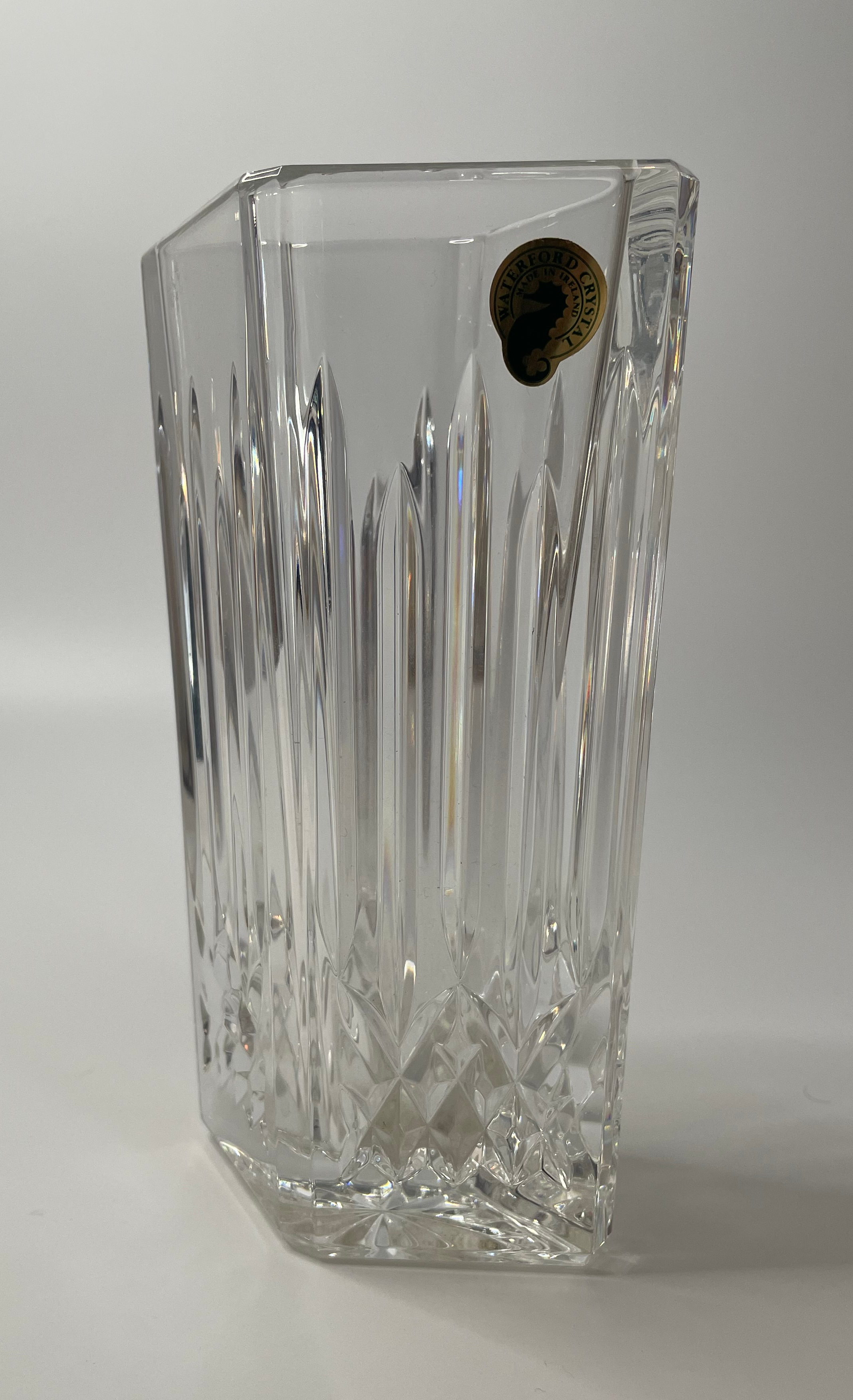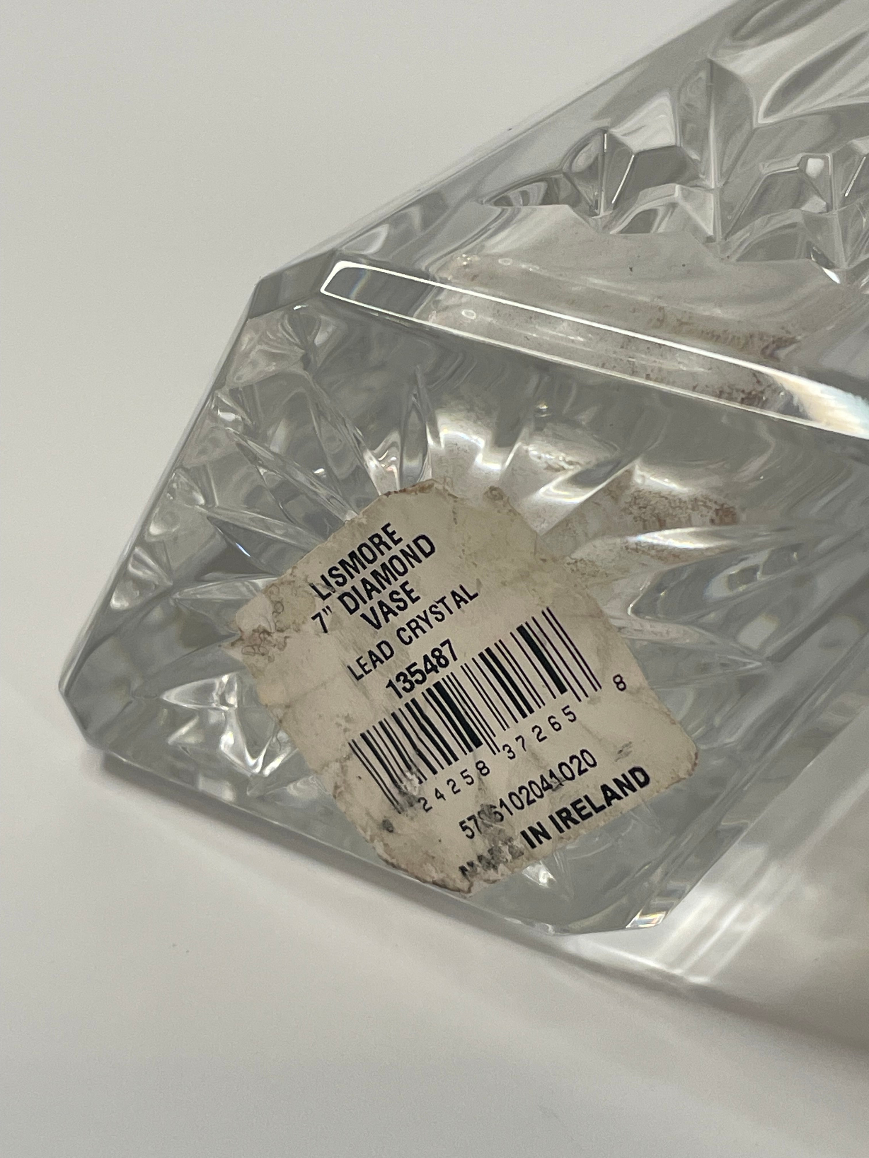 A Waterford Crystal 'lismore' Pattern Diamond Shaped Vase,etched mark and label to bottom.